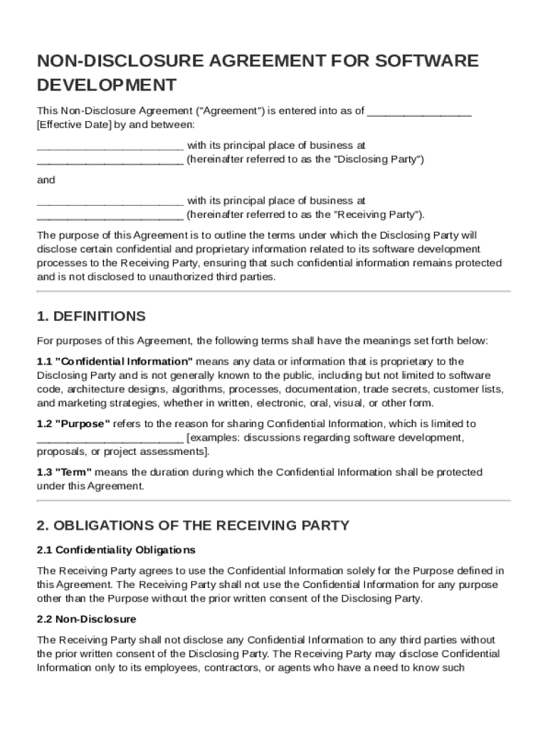 What is Non Disclosure for Software Development Agreement Template