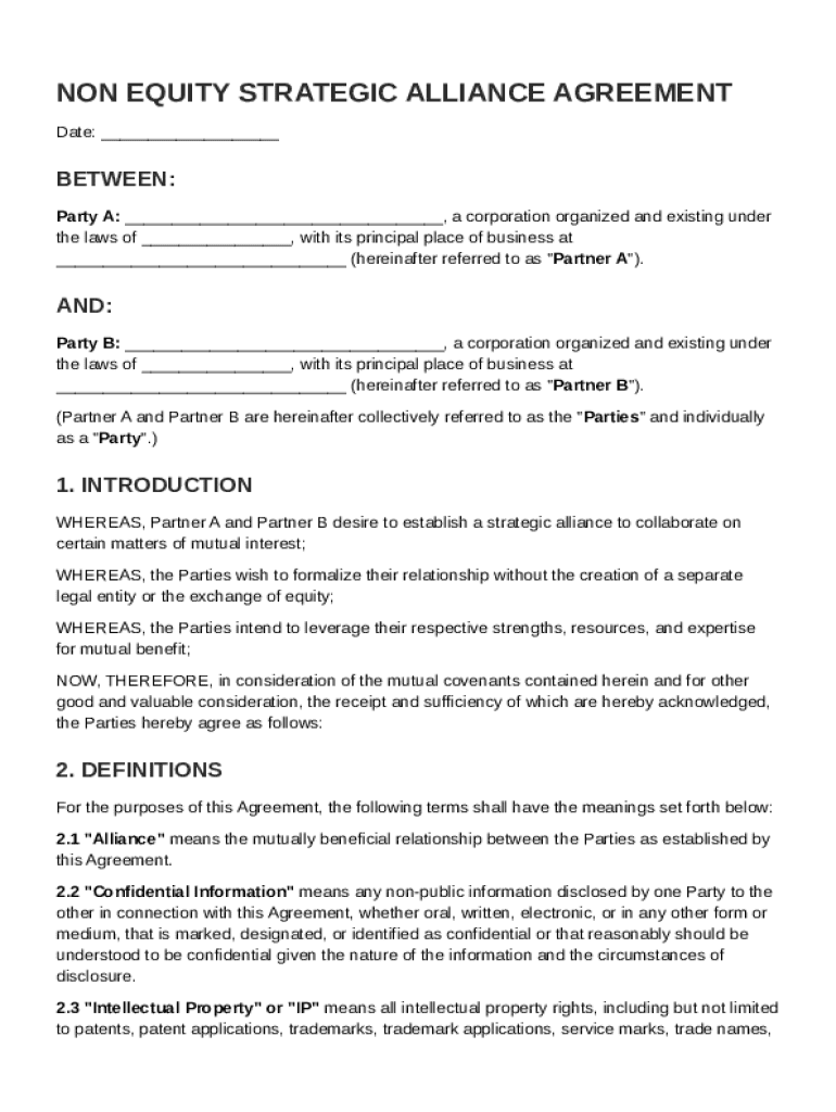 Comprehensive Guide to the Non Equity Strategic Alliance Agreement on pdfFiller