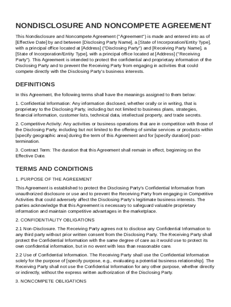 Nondisclosure and Noncompete Agreement Template free printable template