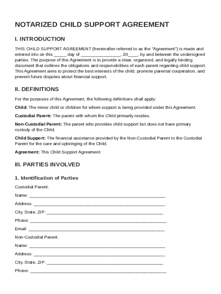 Notarized Child Support Agreement Template Form Guide