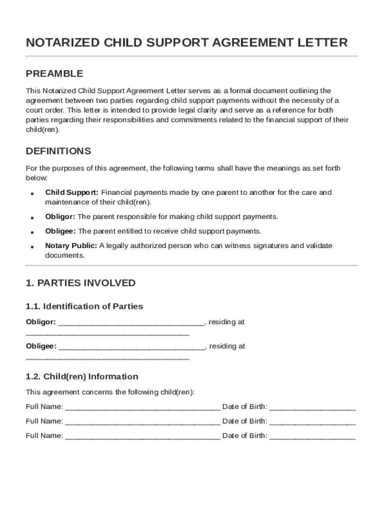 A Notarized Letter Child Support Without Court Agreement is a formal document outlining child support arrangements between parents without requiring court intervention.