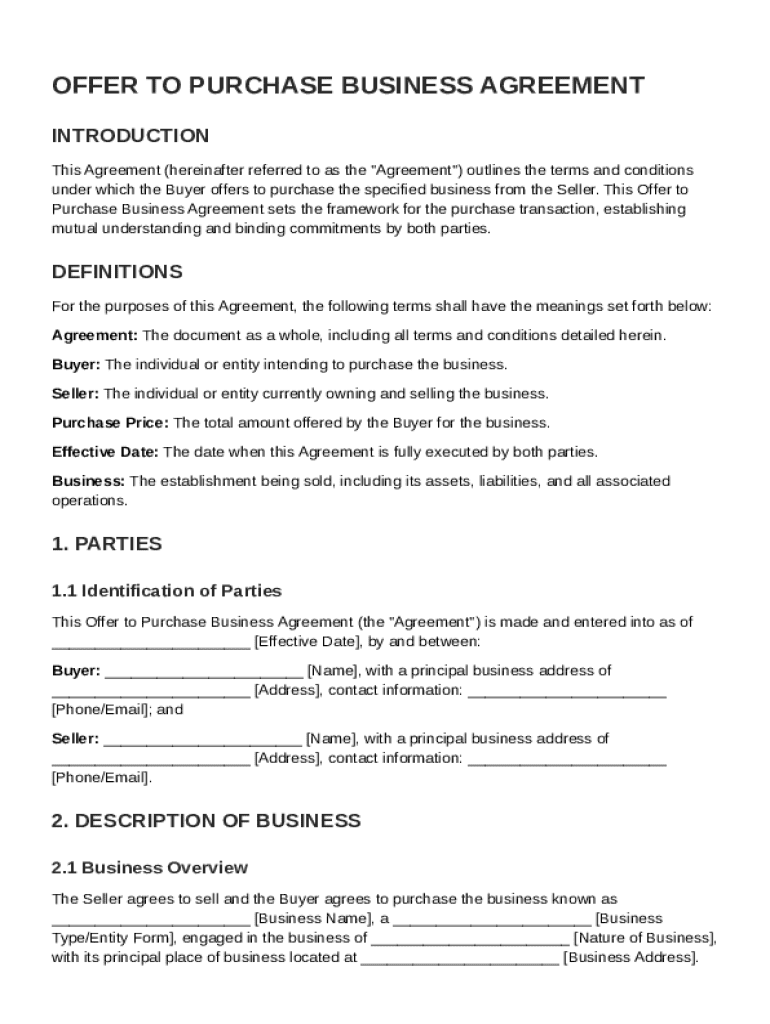 Comprehensive Guide to the Offer to Purchase Business Agreement Template
