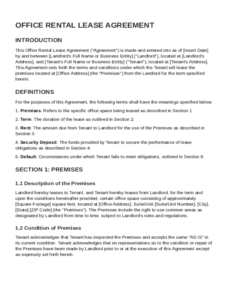 An office rental lease agreement is a legally binding document that outlines the terms under which a tenant can occupy an office space owned by a landlord. It serves to protect both parties by clearly detailing rights, responsibilities, and the conditions of the rental arrangement. Understanding this document is crucial for anyone involved in commercial real estate transactions.