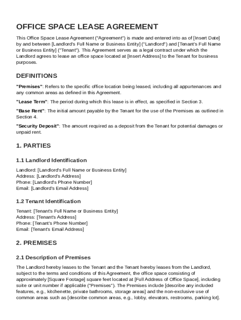 An Office Space Lease Agreement Template is a legal document that outlines the terms and conditions for leasing office space between a landlord and a tenant.
