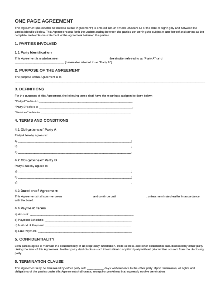 What is One Page Agreement Template