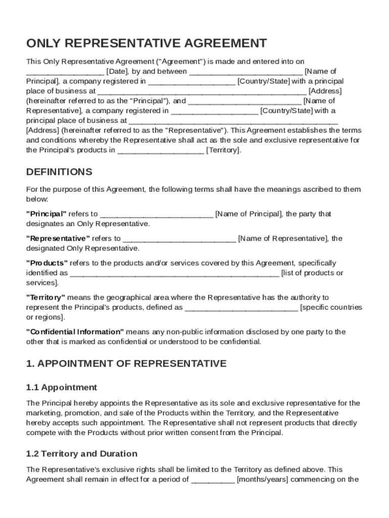The Only Representative Agreement comprises several main sections that are essential for outlining the agreement terms. Key sections often include: