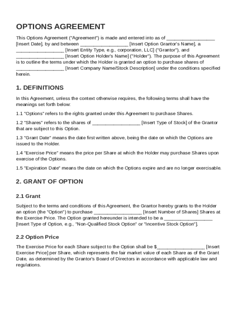 A comprehensive guide to options agreement template forms