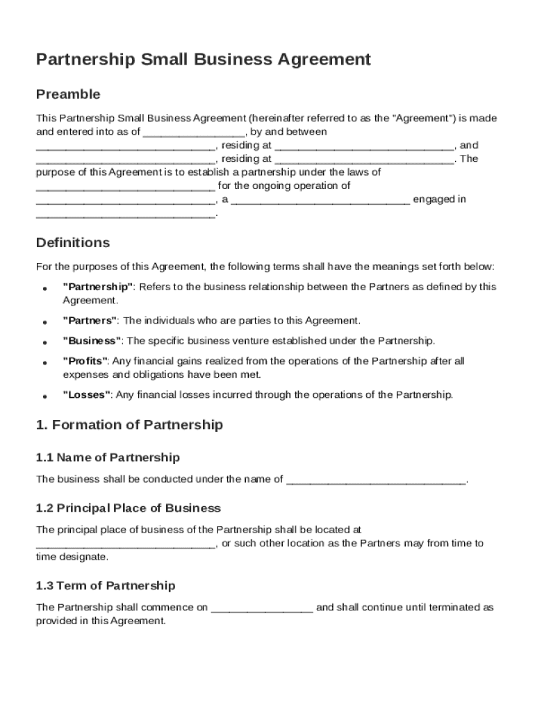 What is Partnership Small Business Agreement Template