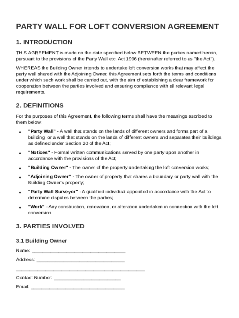 Comprehensive Guide to Party Wall for Loft Conversion Agreement Template