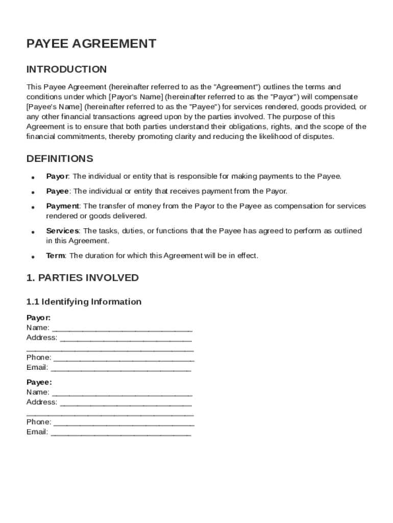 If you're looking to create a Payee Agreement Template form, you're in the right place. This guide will walk you through understanding the significance of a Payee Agreement, its critical components, how to set up the form, specific payment terms, and the responsibilities expected of a payee.