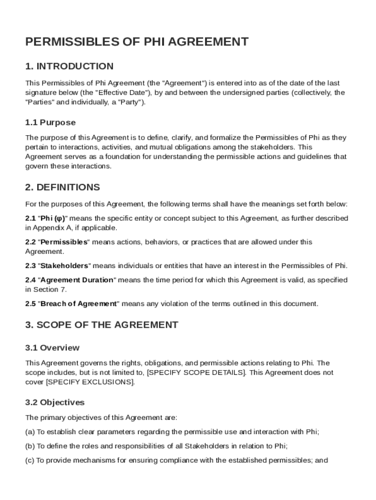 Stakeholders involved in the Permissions of Phi Agreement include entities or individuals who have vested interests in the outcomes of the agreement. Understanding their roles aids in the smooth execution of permissible actions.