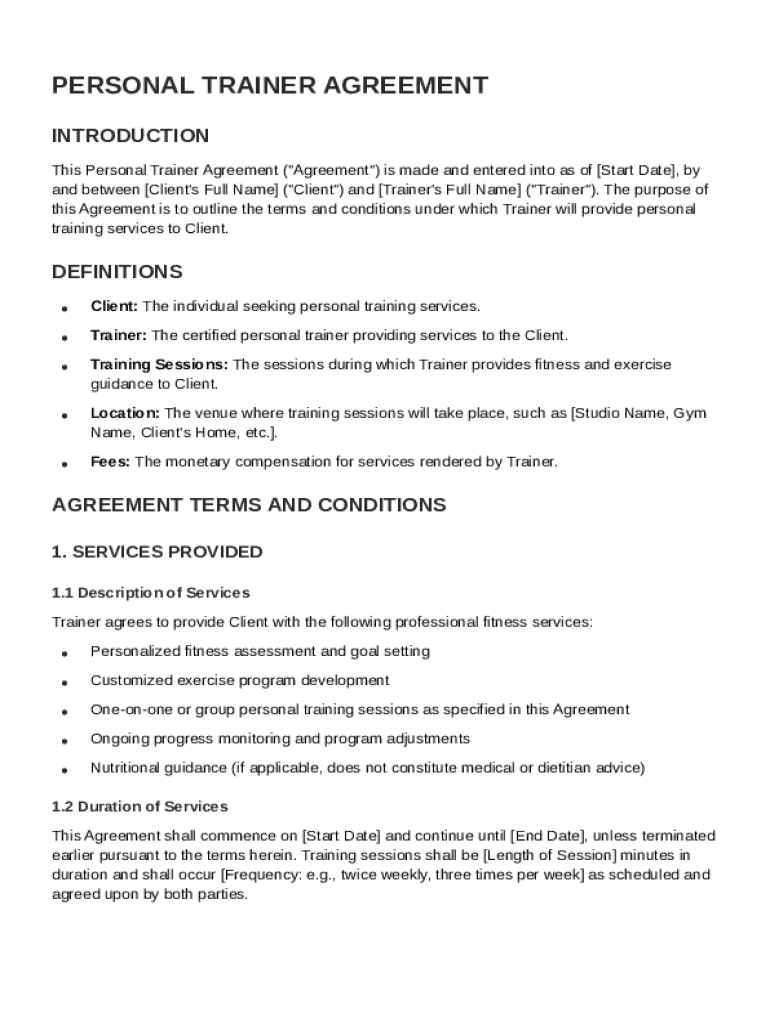 What is Personal Trainer Agreement Template