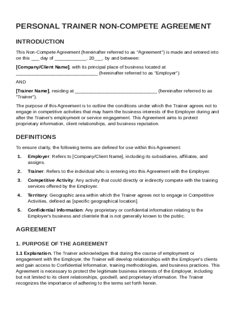 Comprehensive Guide to the Personal Trainer Non Compete Agreement Template