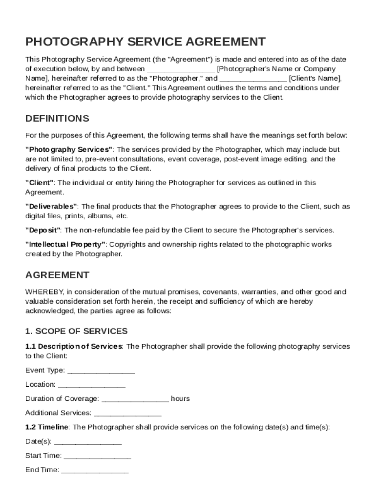 Your ultimate guide to the Photography Service Agreement Template form