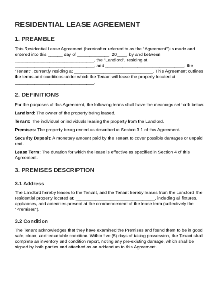 A residential lease agreement is a contract that establishes the legal relationship between a landlord and a tenant. This document details the terms under which a tenant can occupy a rental property, protecting the interests of both parties.