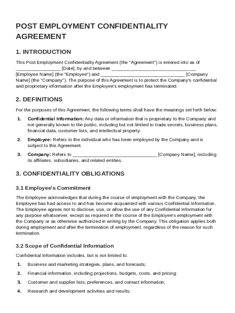 A Post Employment Confidentiality Agreement Template is a legal document that outlines confidentiality obligations for employees after their employment ends.