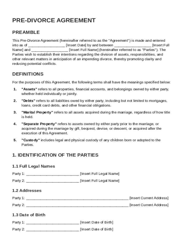What is Pre Divorce Agreement Template