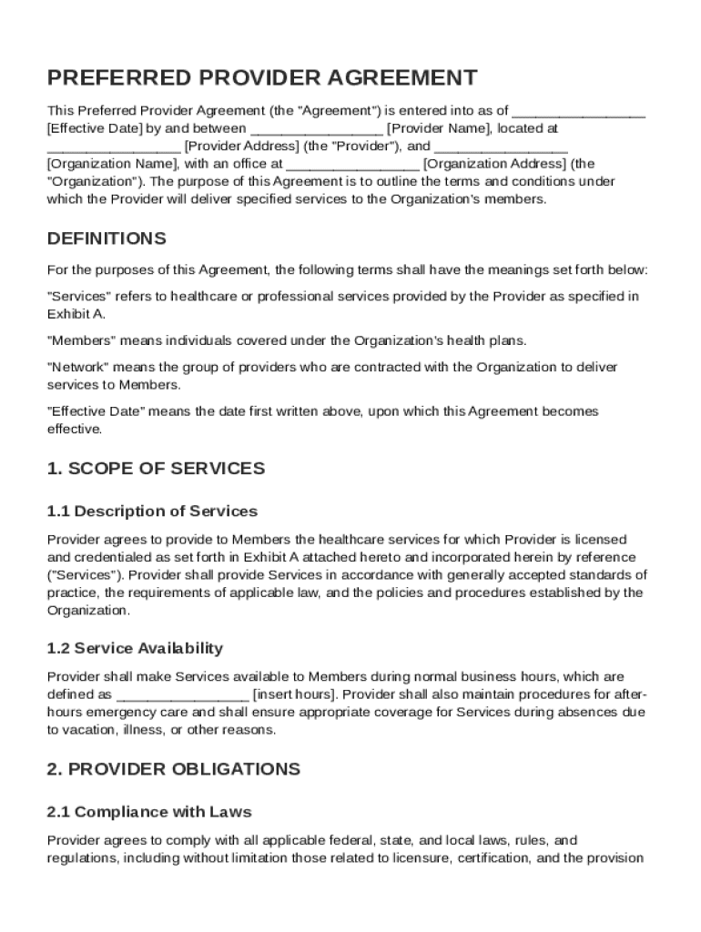 What is Preferred Provider Agreement Template