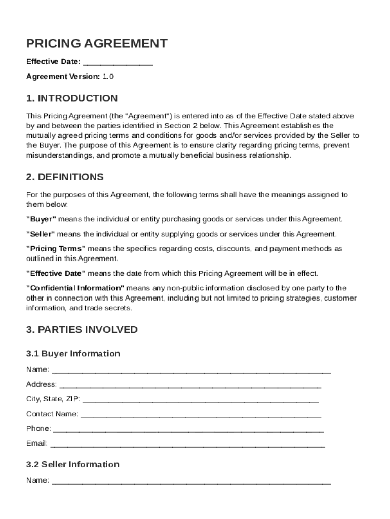 A pricing agreement functions as a formal document that outlines the terms and conditions related to pricing between a buyer and seller. This agreement serves to protect both parties by ensuring clarity and mutual consent regarding financial responsibilities during a business transaction.