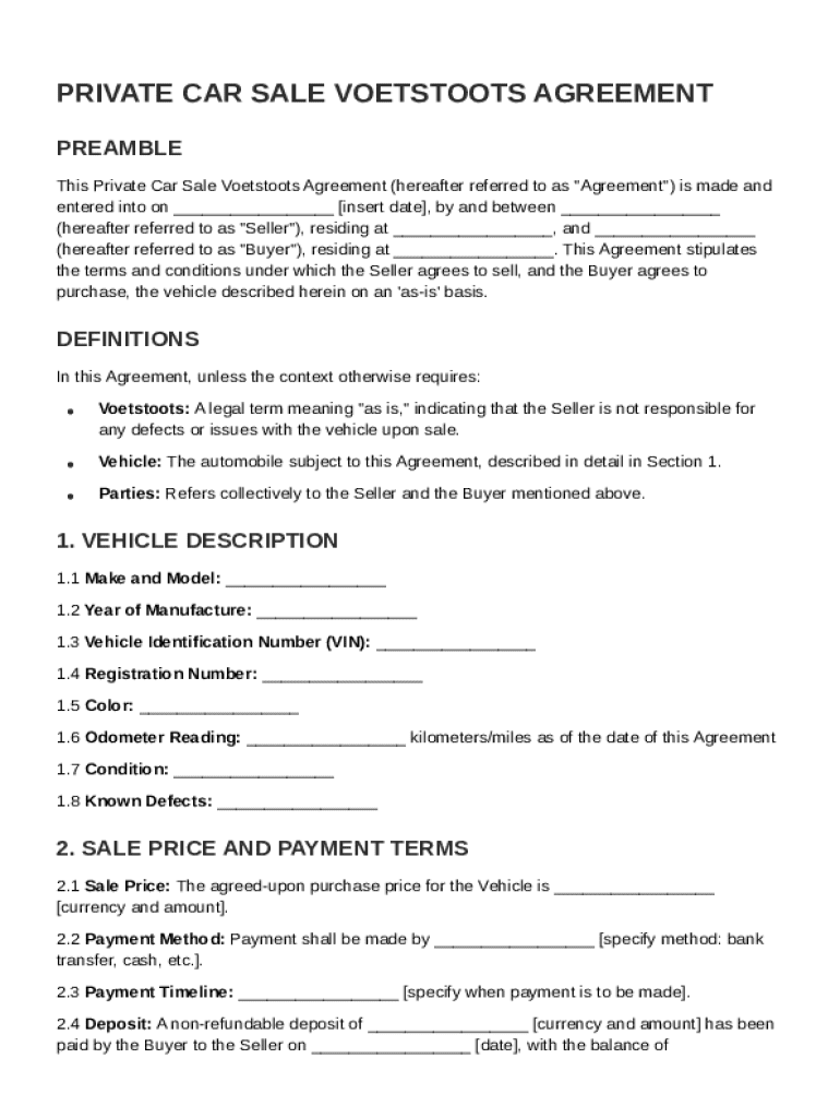 What is Private Car Sale Voetstoots Agreement Template