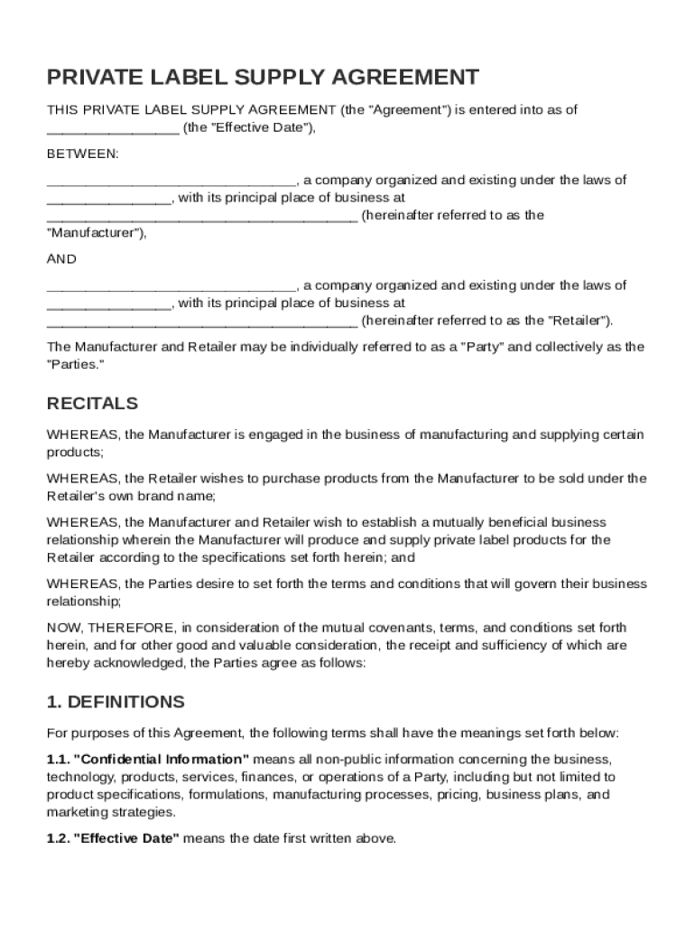 What is Private Label Supply Agreement Template