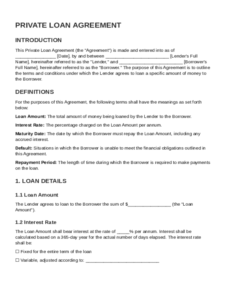 What is Private Loan Agreement Template