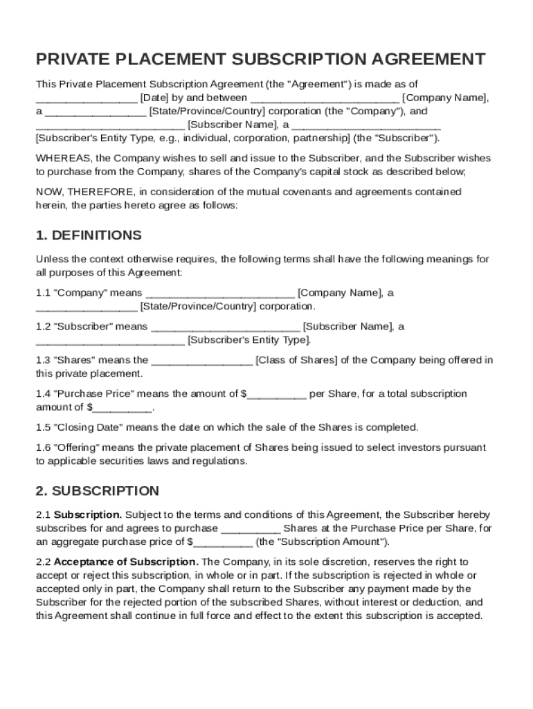 Private Placement Subscription Agreement Template free printable template