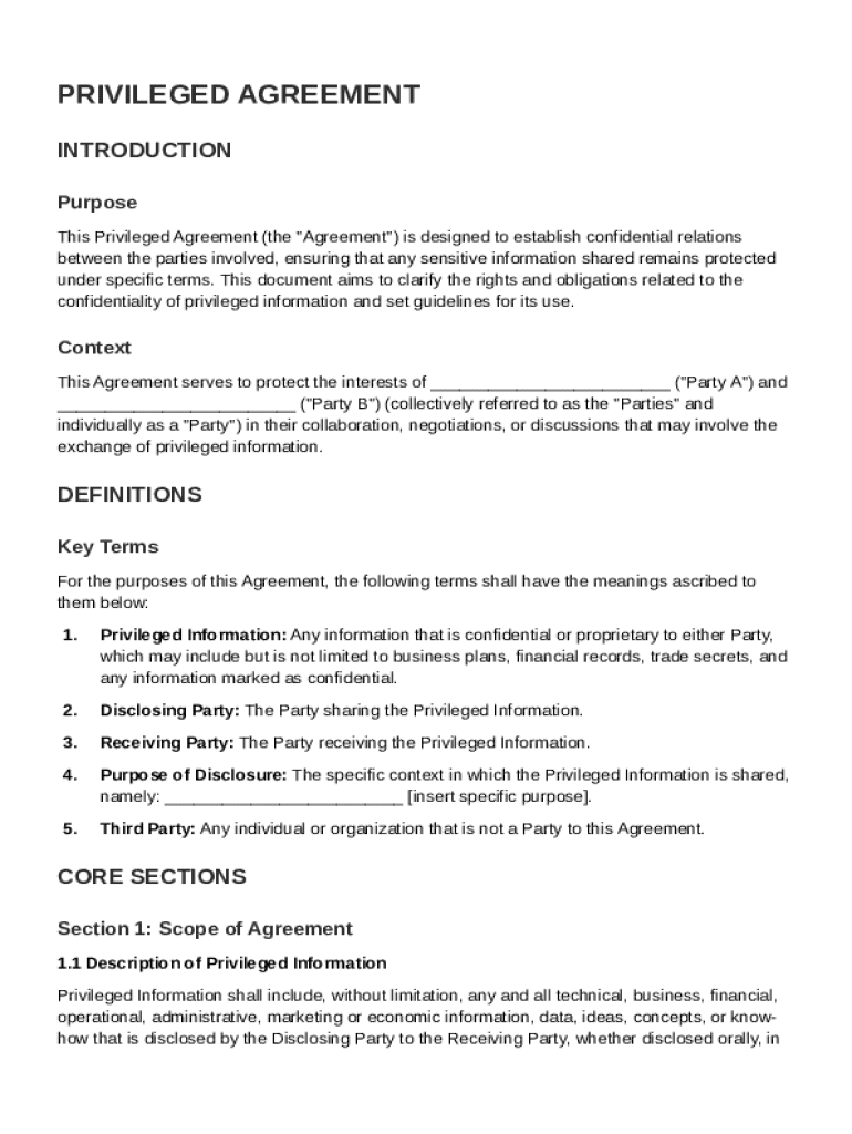 The scope of a Privileged Agreement delineates the boundaries around the information and its usage. Understanding this scope is vital to maintain the integrity of the agreement.