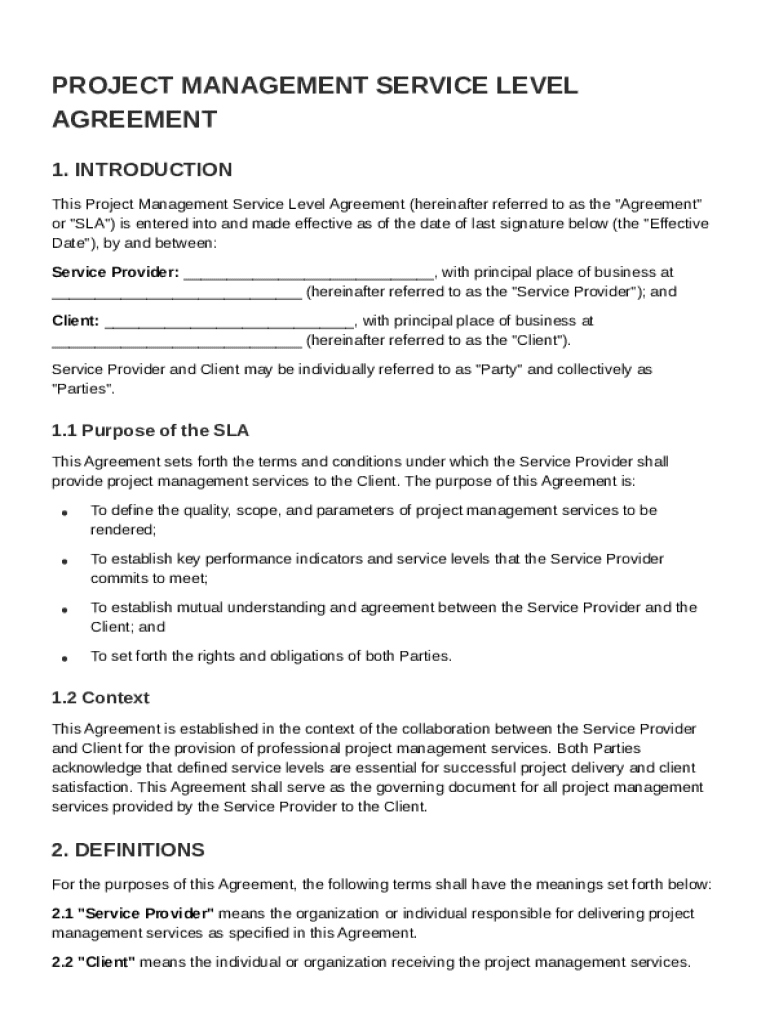 Comprehensive Guide to Project Management Service Level Agreement Template Form