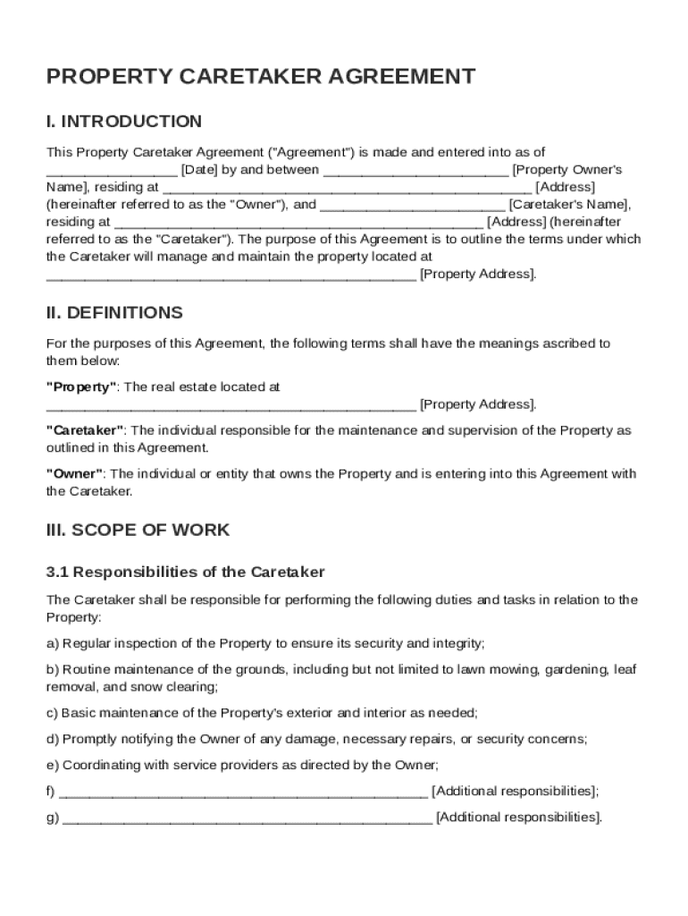 This section provides in-depth information regarding the Property Caretaker Agreement Template to facilitate your understanding and usage of this important document.