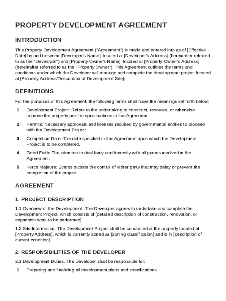 Utilize pdfFiller to easily create and customize the Property Development Agreement.