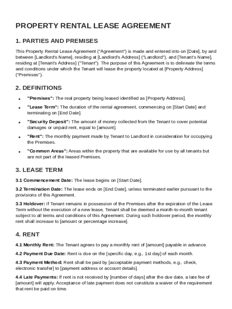 A Property Rental Lease Agreement is a legally binding document that outlines the terms of occupancy between a landlord and tenant. This includes details about the rental property, duration of the lease, and payment obligations. A written agreement reduces disputes and clarifies each party's rights.