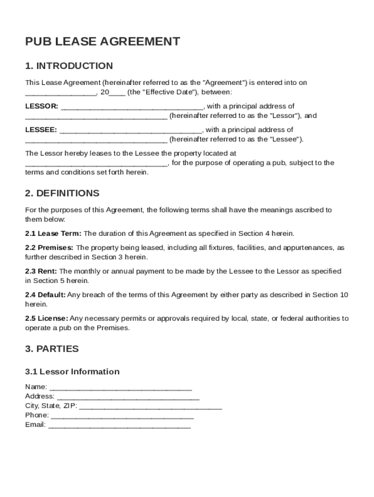What is Pub Lease Agreement Template