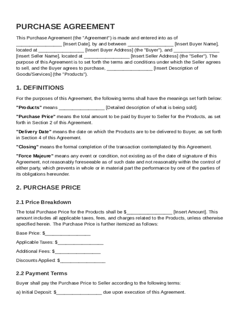 A well-drafted Purchase Agreement includes several essential elements that protect all parties involved in a transaction. Understanding these components is vital to ensure clarity and legal compliance.