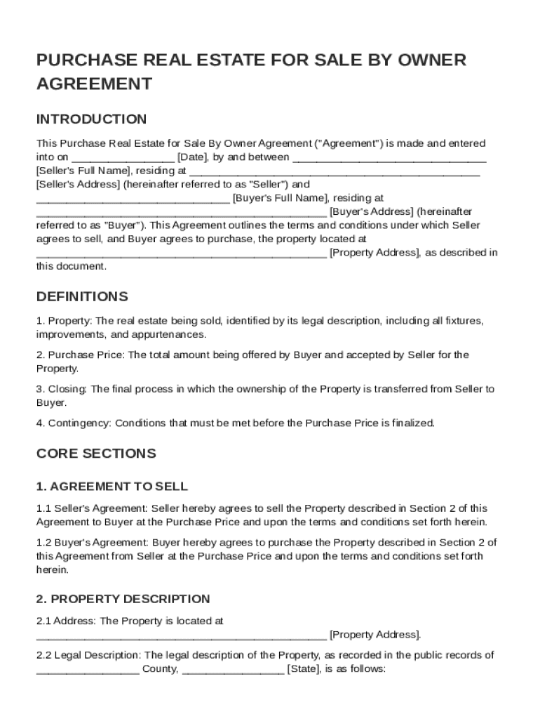 Purchase Real Estate for Sale By Owner Agreement - Comprehensive Guide