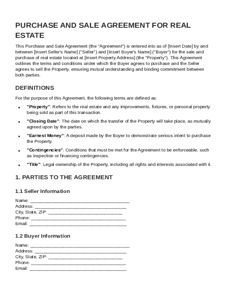 Complete Guide to the Purchase and Sale for Real Estate Agreement Form on pdfFiller
