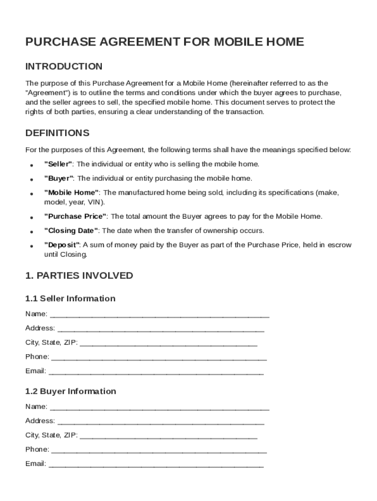 This section will inform you about the key aspects of the Purchase for Mobile Home Agreement Template, including its purpose and essential details for usage.