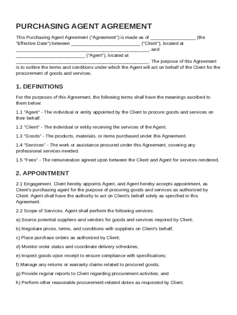 What is Purchasing Agent Agreement Template