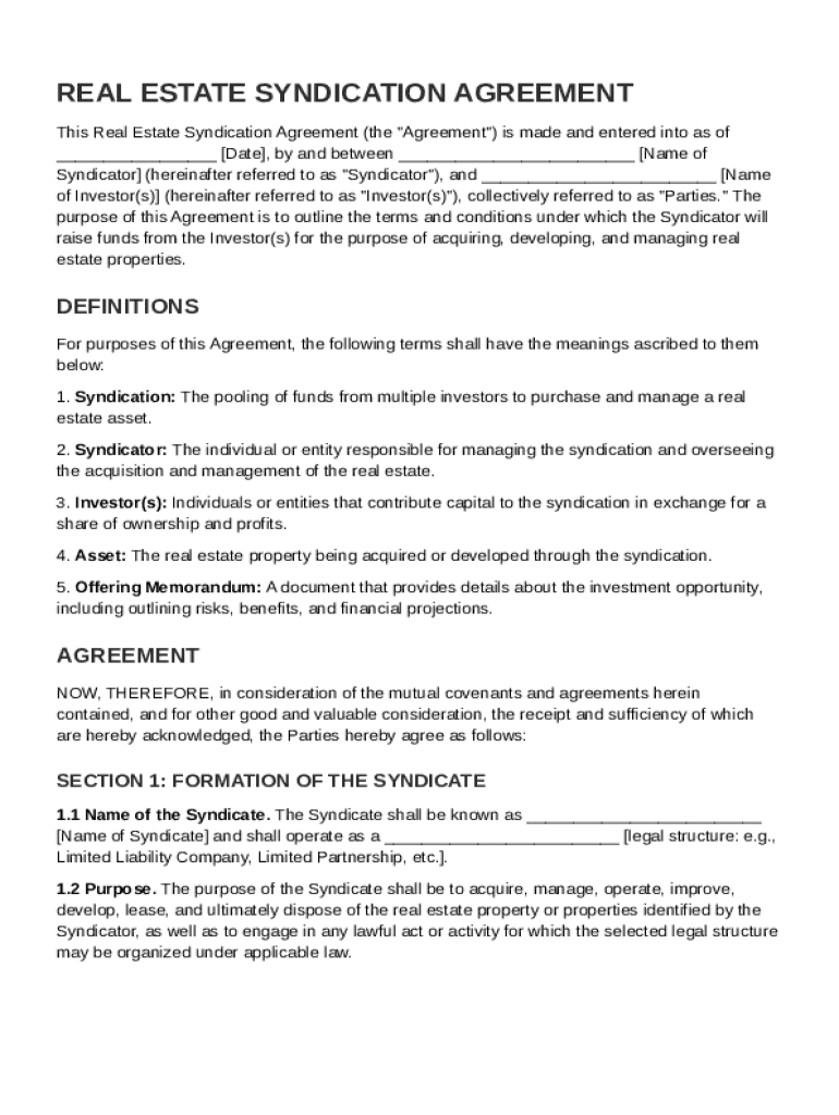 Comprehensive Guide to the Real Estate Syndication Agreement Template Form