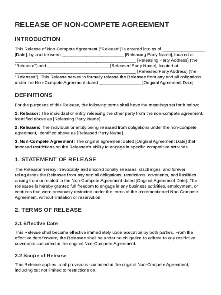 What is Release of Non Compete Agreement Template