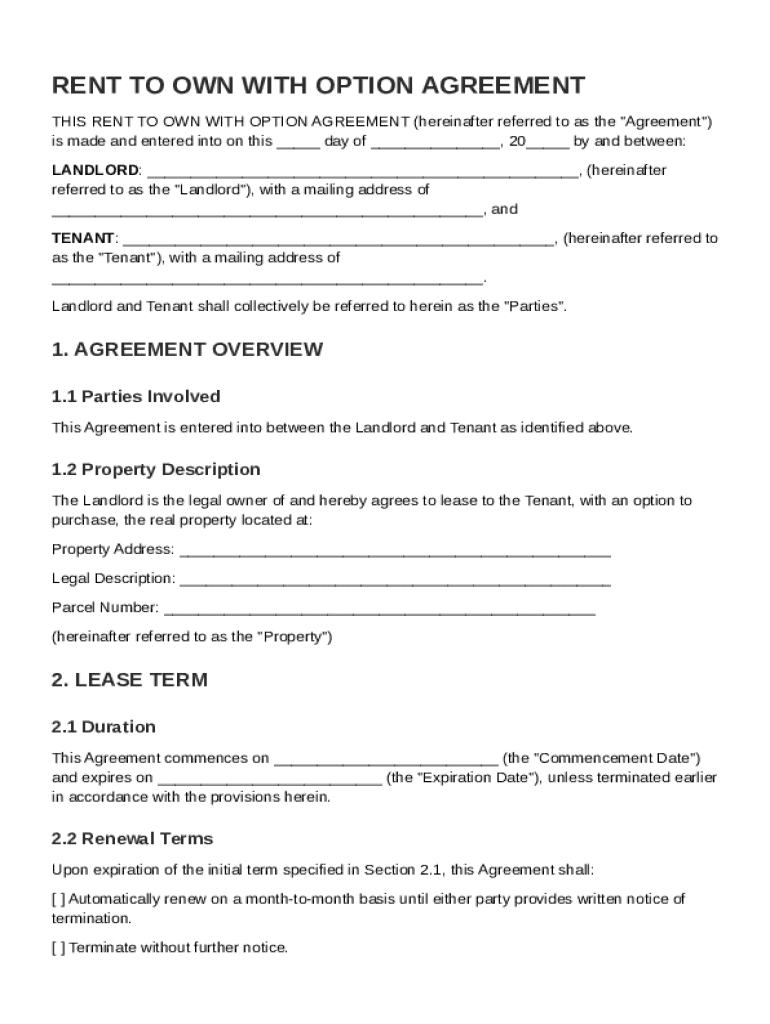 A comprehensive guide to the Rent to Own With Option Agreement Template form