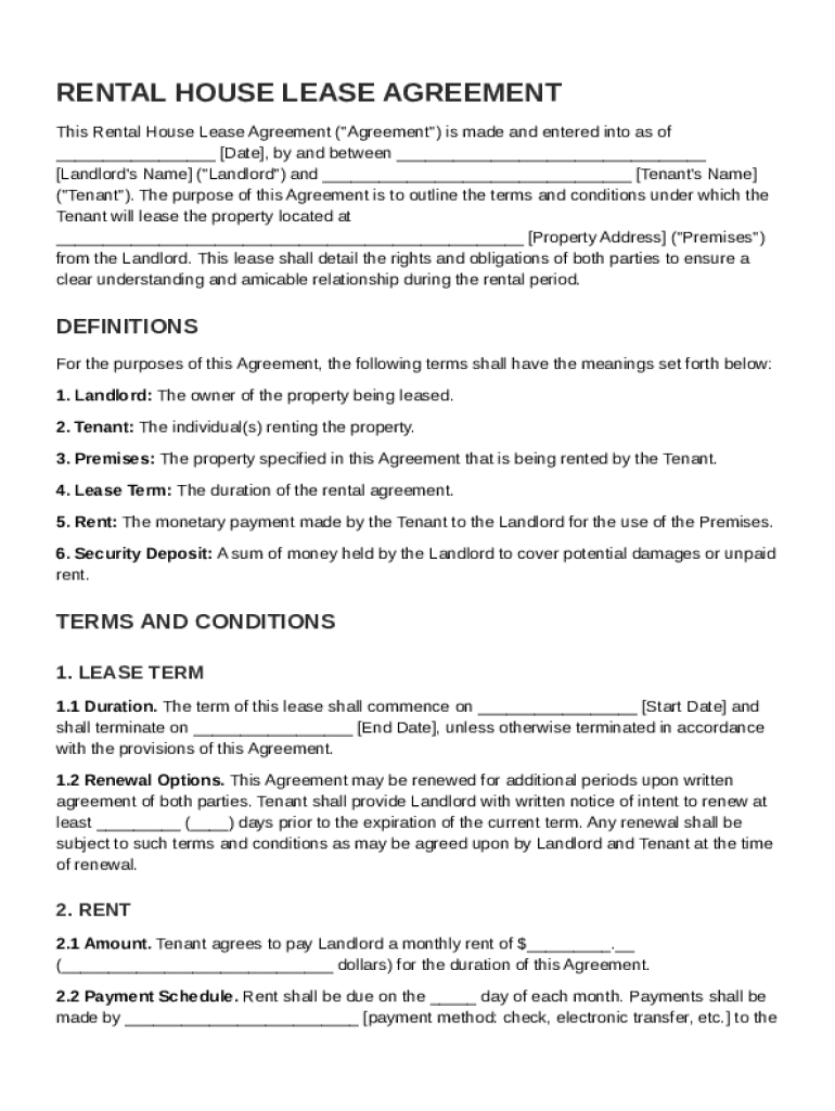 A Rental House Lease Agreement Template is a legal document outlining the terms and conditions under which a landlord rents a property to a tenant.