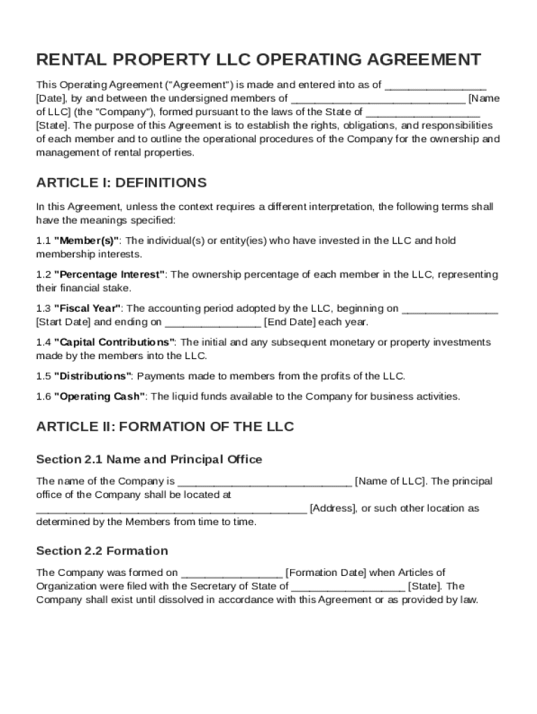 This document establishes the rights, obligations, and responsibilities of each member of a rental property LLC, outlines the operational procedures for the ownership and management of rental properties.