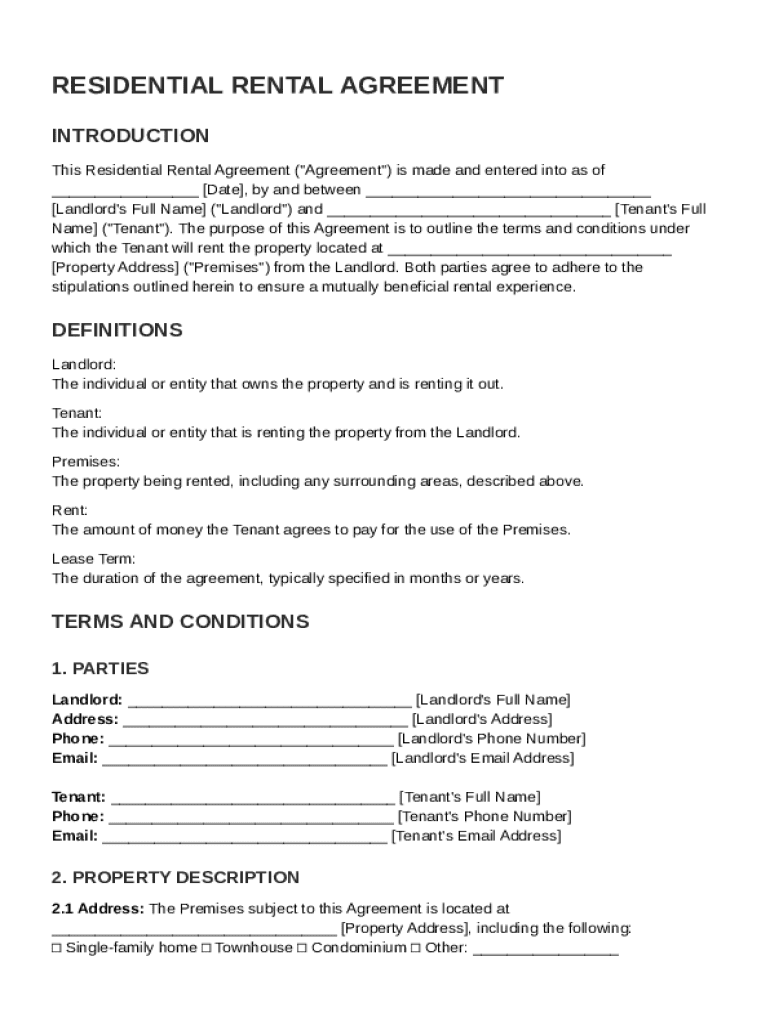 A rental agreement is a legal document that outlines the terms and conditions under which a rental property is leased to a tenant. It should include essential components like rent amount, payment due dates, and property rules. Rental agreements are crucial as they protect both landlords and tenants, ensuring clarity and preventing disputes.