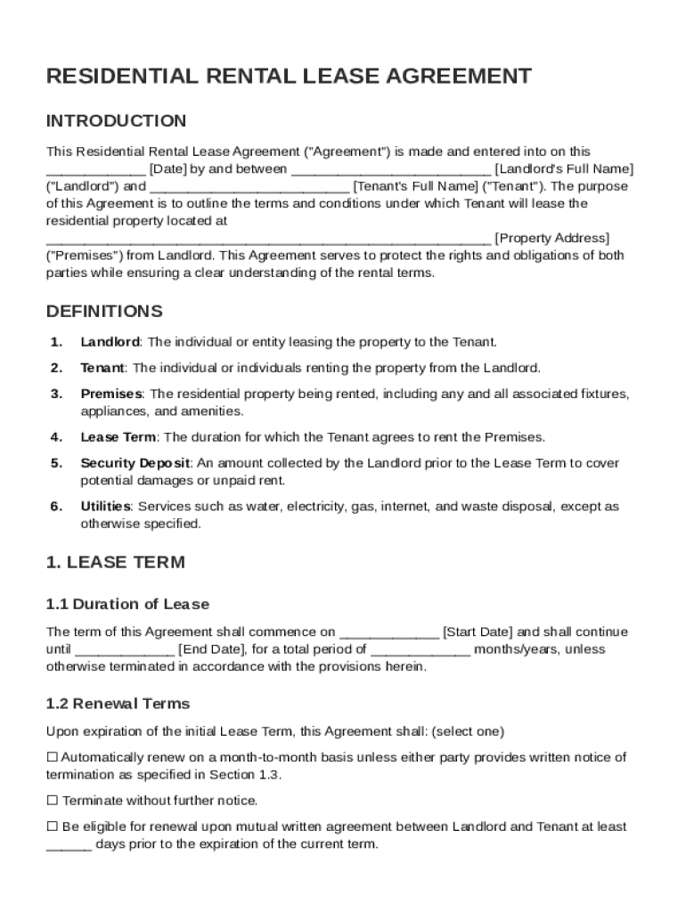 A residential rental lease agreement is a legally binding contract between a landlord and a tenant outlining the terms for renting a property. Its primary purpose is to ensure both parties understand their rights and responsibilities, thus minimizing potential disputes. Clearly outlining terms helps safeguard the interests of both parties.