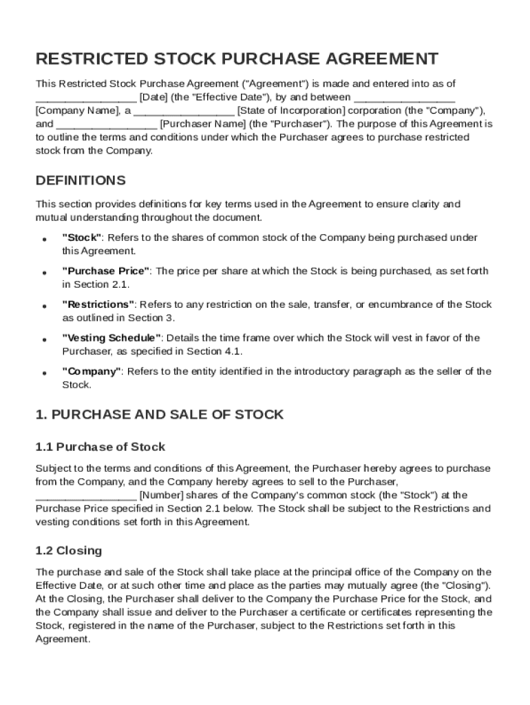 What is Restricted Stock Purchase Agreement Template