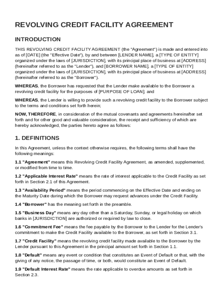 The Revolving Credit Facility Agreement Template form is a crucial document for establishing a flexible borrowing solution. This guide will walk you through understanding, filling out, and managing this agreement effectively.