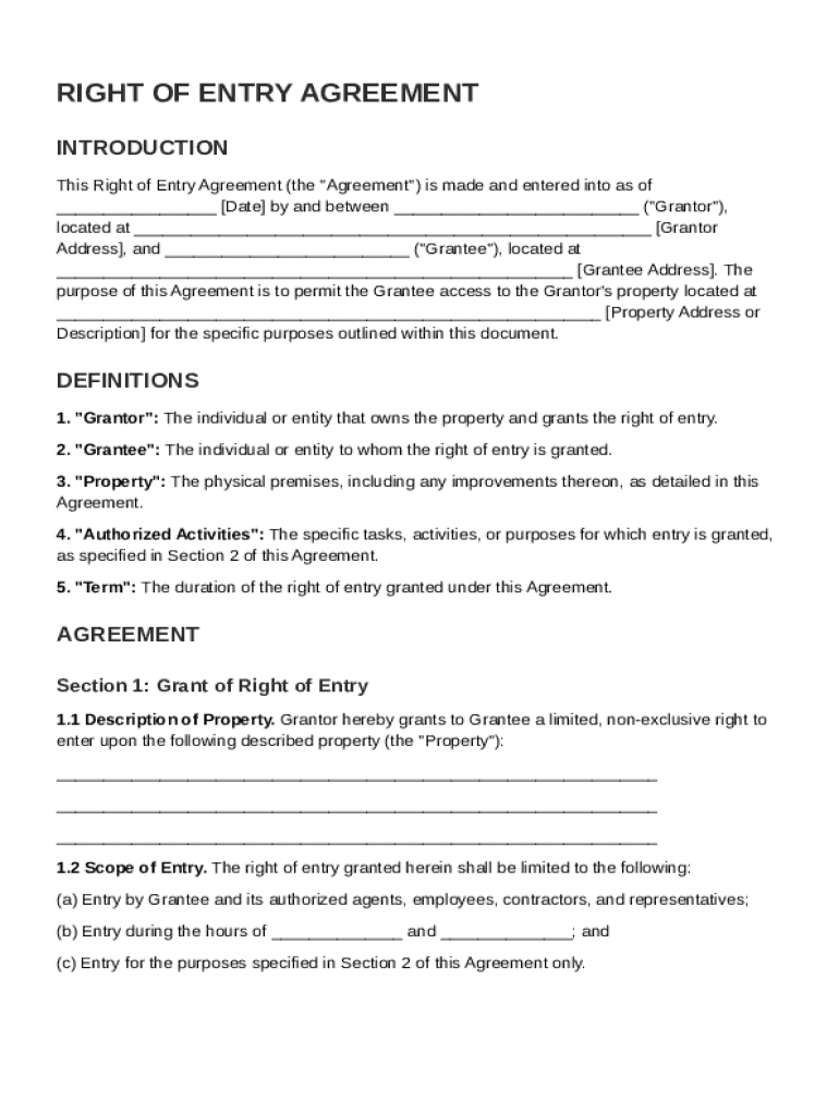Right of Entry Agreement Template Form: A Comprehensive Guide