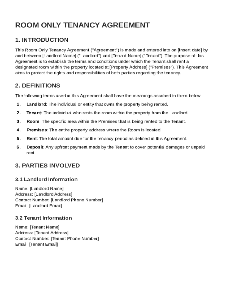 What is Room Only Tenancy Agreement Template
