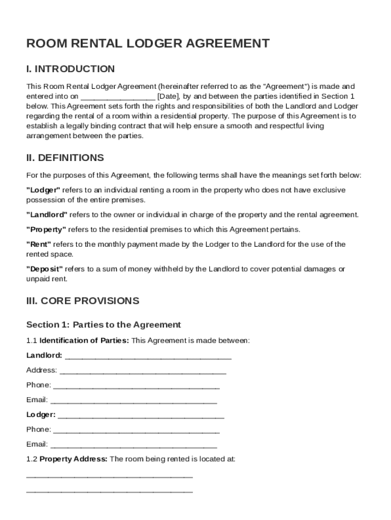 A Room Rental Lodger Agreement Template is a legal document outlining the terms and conditions of renting a room to a lodger.